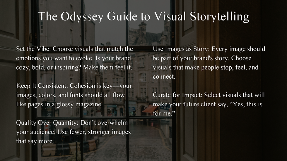 Before we dive into the nitty-gritty of image selection, let’s talk about why this matters. Visual storytelling is one of the most powerful tools you have for building a brand that connects. It’s not just about picking pretty pictures—it’s about curating a collection that tells your story, evokes emotion, and speaks directly to your audience. The right visuals can capture your brand’s essence and help you attract your dream clients. So, how do you make this happen? Let’s break it down.